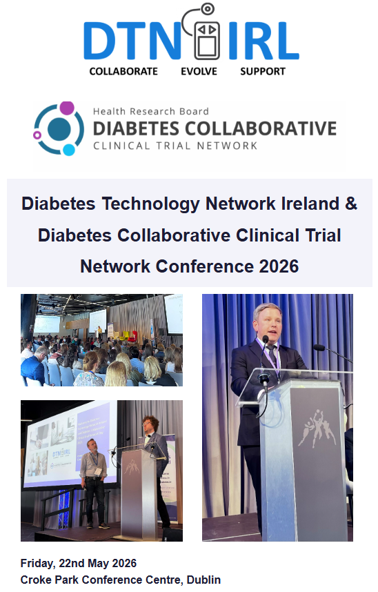 Following last year’s successful conference, we are delighted to once again invite you to this year’s Diabetes Technology Network Ireland and HRB Diabetes Collaborative Clinical Trial Network conference taking place on Friday, 22 May 2026 at Croke Park Conference Centre, Dublin. This year’s event will focus on Transforming Diabetes Care: Evidence-Based Advances in Technology and Research.